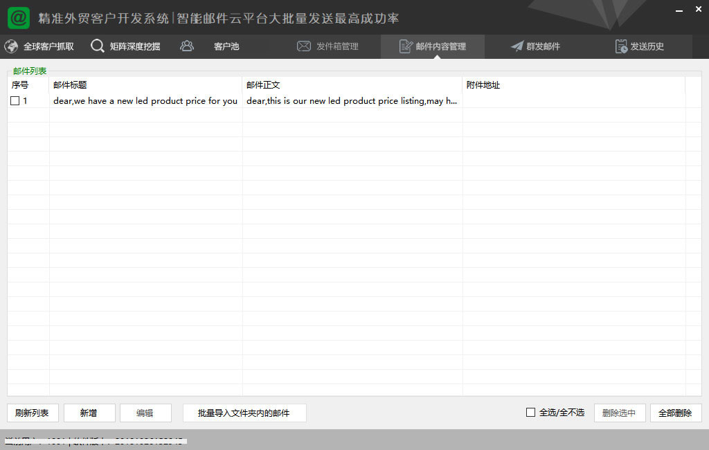 对获取的网站进行二次并发深度抓取:自带邮箱验证、客户池管理、开发信群发、邮件追踪、邮件回执、发送记录等强大的客户营销功能。